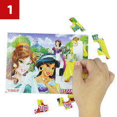 Cara memainkan puzzle cukup mudah untuk dilakukan anak-anak, yakni dengan mencocokkan tiap bagian/kepingan bergambar satu persatu sesuai gambar hingga menjadi satu gambar karakter utuh. Terbuat dari bahan kertas karton yang ringan dan aman untuk dimainkan anak-anak diatas usia 3 tahun (3+).